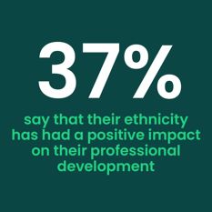 Ethnic minorities have reported a more positive experience in the profession. In 2025, 37% said that their ethnicity has had a positive impact on their professional development (of whom 20% said the impact was very positive). This is up from 30% in 2023.