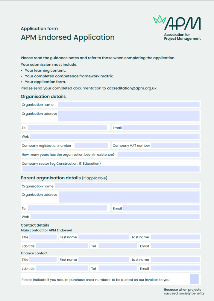 Completed forms should be submitted to accreditation@apm.org.uk.