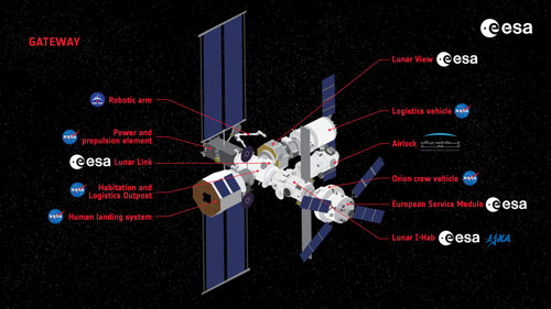 Gateway is the spaceship situated in lunar orbit and will remain in orbit for more than a decade, providing a place to live and work, and supporting long-term science and human exploration on and around the Moon.