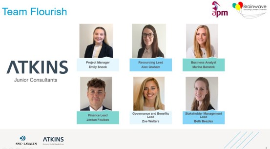 The event was held virtually over GoToMeeting and at the end of the night after four remarkable presentations, the Winners trophy was awarded to Team Flourish from Atkins who are based in Bristol. Team Flourish delivered a project to their chosen charity, Brainwave. The original objective of the project was to deliver a Whole Family Support Mechanism to Brainwave by providing a digital platform to increase engagement with existing and prospective users of their service. However, the results from an end-user survey considering the impacts of COVID-19 led to a review of scope and the consequent decision to change from the WFSM to a Digital Brochure. Team Flourish successfully delivered the Digital Brochure to Brainwave within the revised timeframe and project deadlines using their robust change management process. Their charity, Brainwave, said ‘We have really enjoyed working with Team Flourish over the past few months. They worked well together as a team and communicated well with us throughout the project. The third lockdown meant that we could not go ahead with the original goals of the project. Despite this, the team were very adaptable and worked with us to find a solution and we are extremely pleased with the digital brochure. This will make a huge difference to the charity.’ Brainwave is a charity that exists to help children with disabilities achieve greater independence by aiming to improve their mobility, communication skills and learning potential through a range of specialist therapies, the children they work with have a range of conditions including autism, cerebral palsy and genetic disorders such as Down syndrome.