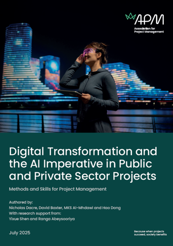 Dacre, N., Baxter, D., Dong, H., Al-Mhdawi, M. K. S., Abeysooriya, R., & Shen, Y. (2025). Digital transformation and the AI imperative in public and private sector projects: Methods and skills for project management. Association for Project Management. https://doi.org/10.61175/A7F2K9BZ