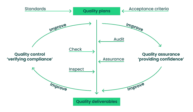 Quality control consists of inspection, measurement and testing to verify that the project outputs meet acceptance criteria defined during quality planning. It is focused on preventing problems being passed on to the internal or external customer.
