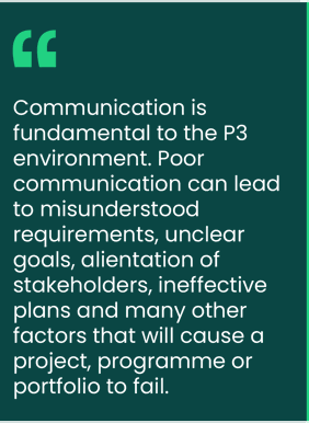 Communication has long been recognised as a key success factor for all those involved in project-based work. “Communication is fundamental to the P3 environment. Poor communication can lead to misunderstood requirements, unclear goals, alienation of stakeholders, ineffective plans and many other factors that will cause a project, programme or portfolio to fail.”1