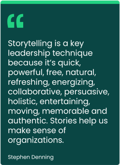 Organisational storytelling is a powerful vehicle for constructing meaning that relies on conventions of plot and characterization, combined with the narrative skill of the storyteller, to entertain, persuade, and win over.