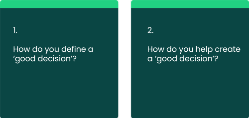 So how did the group ‘define’ a good decision? Following much discussion, the group settled on the following definition: